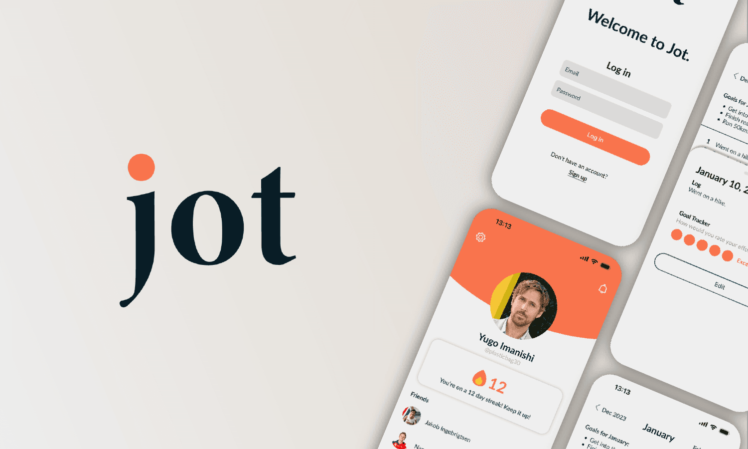 Personal product design project for a mobile journaling app that helps stay consistent and tracks progress.